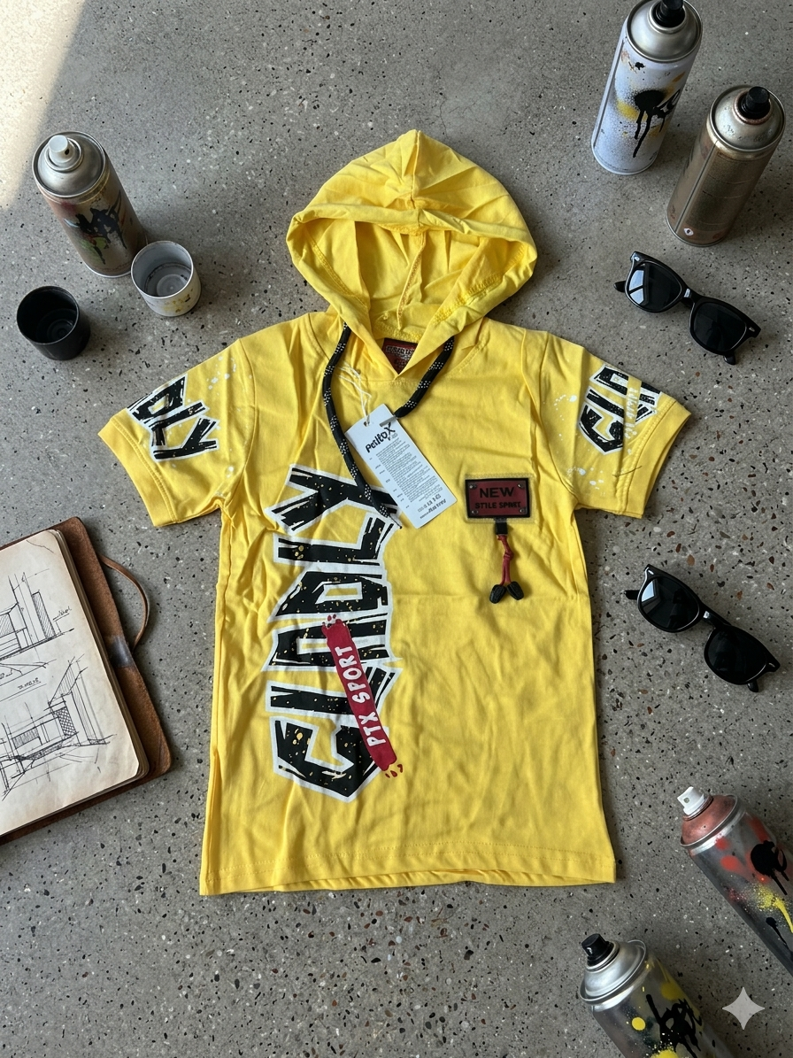 👉Żółta bluza z kapturem dla dzieci:** Pełna słońca i energii, idealna na radosne zabawy.