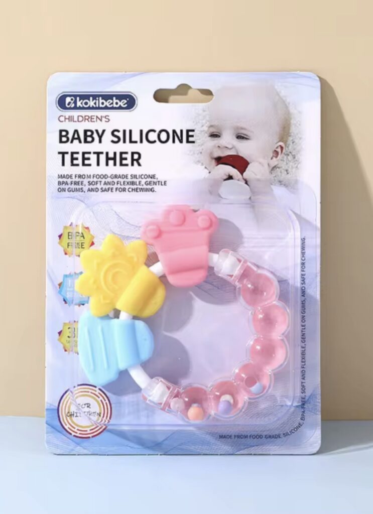 Nasz gryzak został zaprojektowany z myślą o delikatnych dziąsłach i małych rączkach. Wykonany z wysokiej jakości silikonu spożywczego bez BPA, zapewnia bezpieczeństwo, komfort i ulgę w czasie ząbkowania.