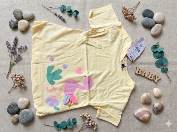 Szukasz wygodnego ubranka na lato dla dziecka? Ten żółty T-shirt dla dzieci 6–12 miesięcy to połączenie komfortu i prostego stylu. Jest lekki i przewiewny, dlatego dobrze sprawdza się w ciepłe dni.